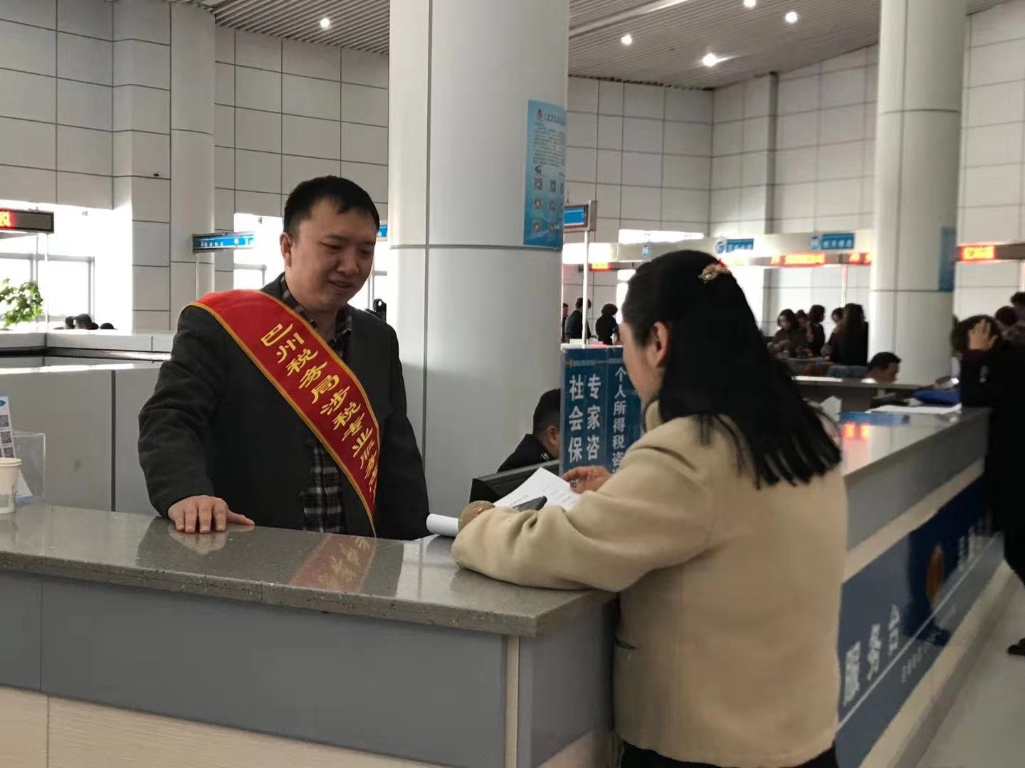 巴州稅務局借力中介機構助力個人所得稅改革和減稅降費政策的落實 為深入貫徹落實黨中央、國務院關于個人所得稅改革和減稅降費決策部署,切實發揮涉稅專業服務機構專業化、杠桿式服務作用,助力國家惠民利民稅收政策效用顯現,讓改革發展成果更好的惠及新疆各族人民,經過巴州稅務局、庫爾勒市稅務局與轄區多家涉稅中介服務機構的積極溝通和聯系,在層層篩選、多方比對后,確定了五家涉稅專業服務機構進駐庫爾勒州市行政服務廳,充分發揮涉稅專業服務專業化、杠桿式服務作用,協助稅務部門對納稅人進行辦稅輔導和現場培訓,及涉稅專業服務志愿接聽、公益宣講、志愿咨詢活動。 3月11日是三月納稅申報期的第二周,恰逢稅務機關金稅三期軟件雙軌運行的測試期,辦稅服務大廳一時人潮涌動,導稅臺里的咨詢輔導人員被納稅人層層擁圍。導稅臺里佩戴著“巴州稅務局涉稅專業服務志愿者”授帶的志愿者尤尼泰巴州稅務師事務所所長盧軍是本次志愿服務的第一位志愿者,此時正在為一位房產公司的會計耐心解答房地產企業的土地出讓金應該如何抵扣增值稅等問題。其他納稅人在聽到盧軍的專業解答后,也都紛紛來到其他導稅志愿者身邊咨詢自己在稅收、會計方面遇到的問題,一時間,導稅臺變成了稅收、會計知識的現場交流培訓會,專業、細致的服務受到稅務機關和納稅人的贊揚!。 從3月開始每個征期,巴州稅務局安排上述五家涉稅中介機構均會輪流在辦稅務廳內進行現場“一對—”“面對面”的輔導培訓,培訓內容涉及稅收政策咨詢、會計賬務處理以及稅收籌劃等方面的業務。 據統計,僅3月11日當天,志愿服務就輔導協助納稅人辦理稅費業務34人次,使廣大納稅人及時掌握個人所得稅新政及新一輪減稅降費政策,有效提高辦稅效率,提升服務質量,緩解了工作人員工作壓力。下一步該局將繼續堅持“服務觀念創新化,服務手段多元化、服務行為人性化”的原則,充分發揮涉稅中介的積極作用,促進巴州稅務局納稅服務水平的進一步提升,使納稅人獲得良好的獲得感和辦稅體驗。